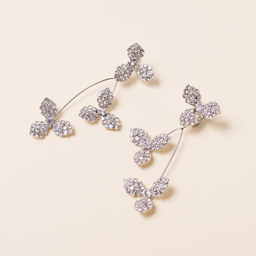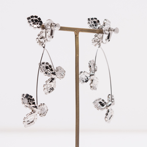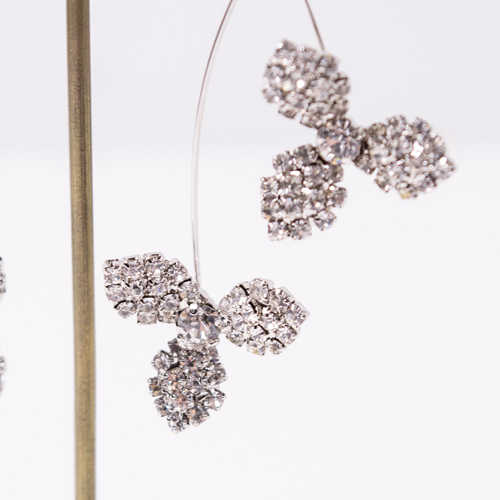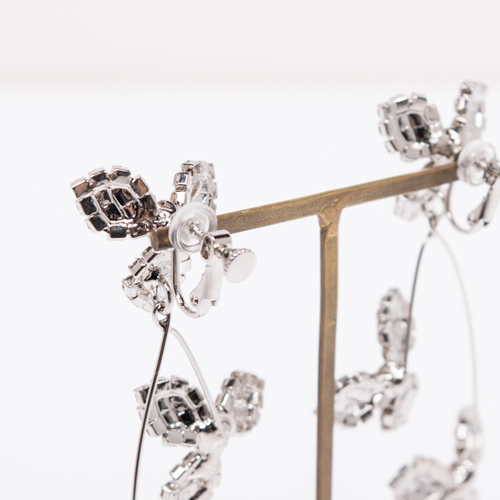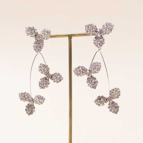 シルバーのストーンで埋め尽くしたフラワーモチーフが、高級感があり上品な印象のイヤリング。
